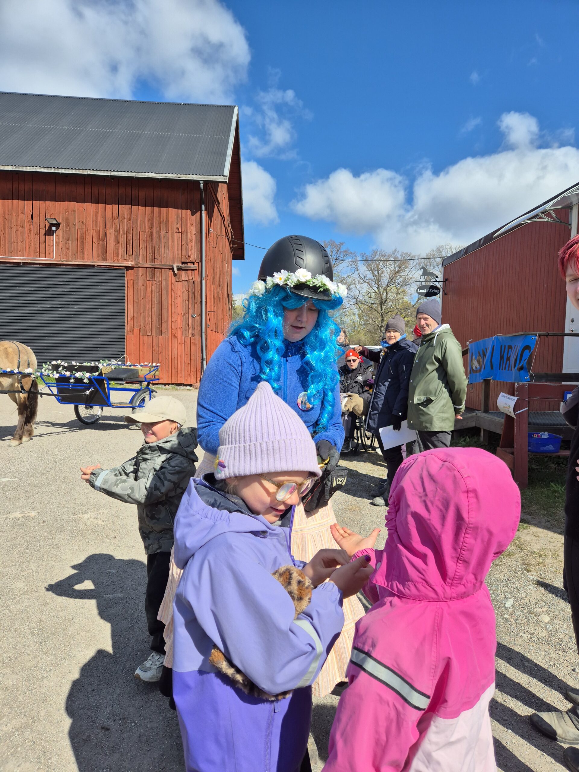 Äntligen blev det medlemsdag ! Trots lite vind och snålblåst blev vi runt 50 medlemmar som samlades på stallbacken . Vi pysslade ,lekte, planterade, åt korv, fikade och hade det allmänt mysigt .Ett oväntat och roligt besök av Idi och Lunkenlina som delade ut guldpengar höjde stämningen ännu mer .Tack till er alla som kom ,det blev en minnesvärd dag!